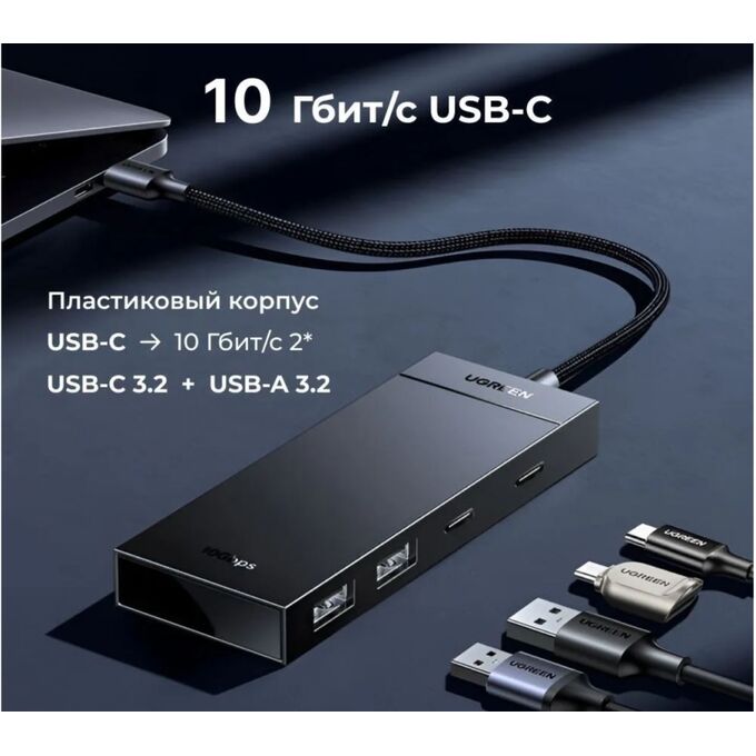 Хаб UGREEN CM806 (35583) USB-C To 2xUSB-A + 2xUSB-C HUB without PD. Цвет: черный