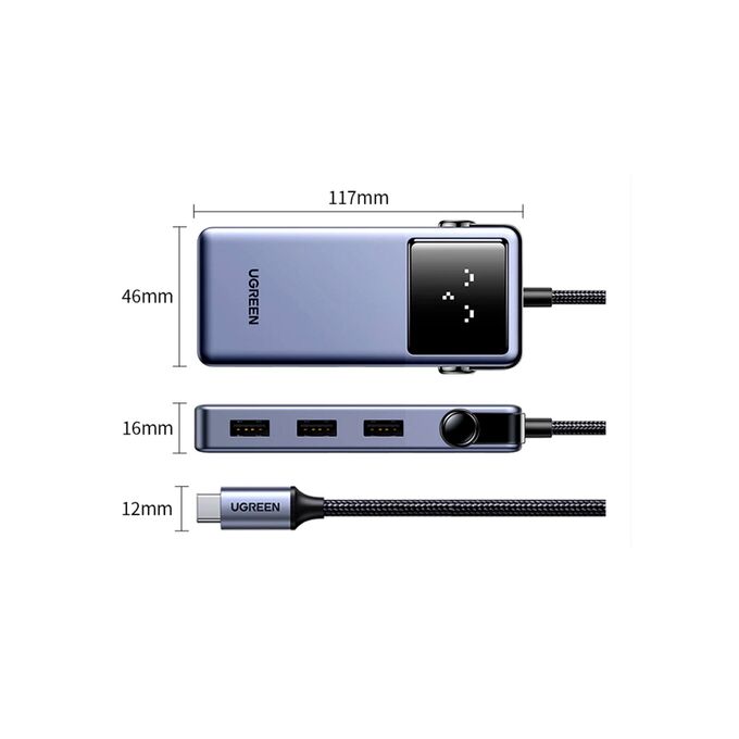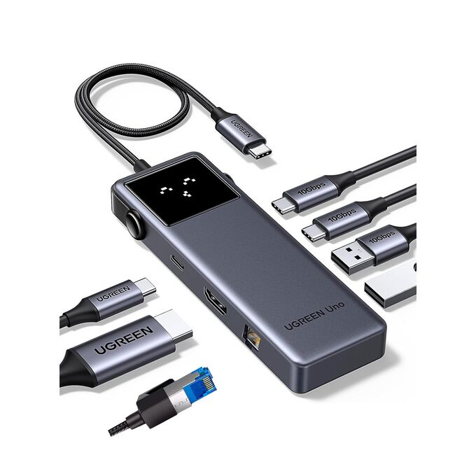 Хаб UGREEN CM888 (45155) UNO 7-in-1 4K@60Hz USB-C+3*USB-A+Ethernet+PD 100W+HDMI Hub Gray