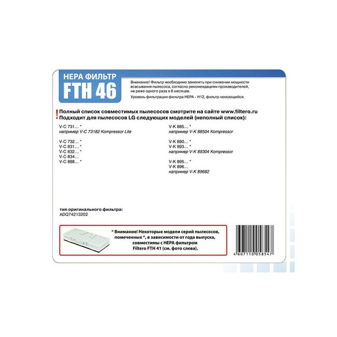 Фильтр Filtero FTH46 уровня фильтрации НЕРА Н 12.