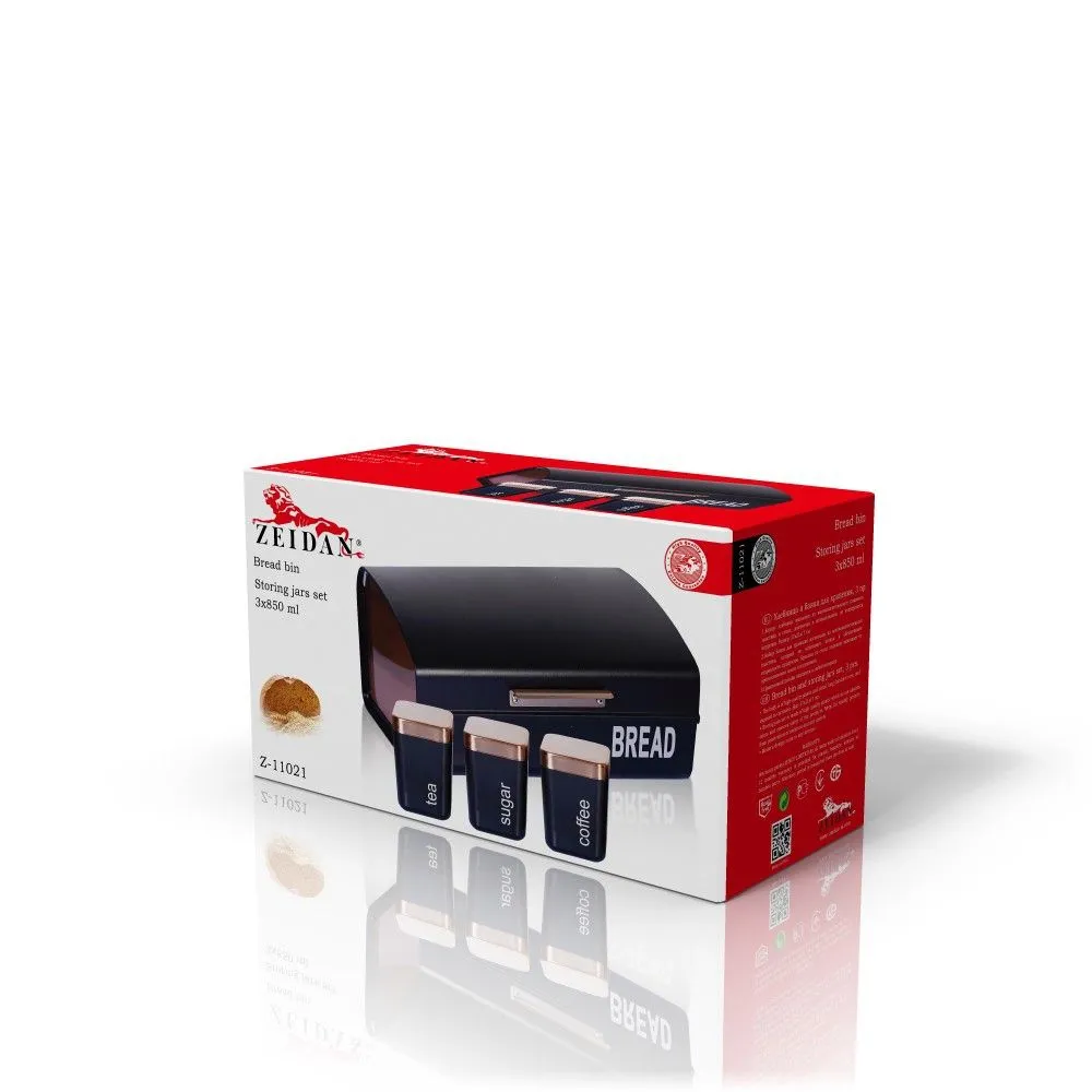 Хлебница Zeidan Z-11021 черная с банками для сыпучих