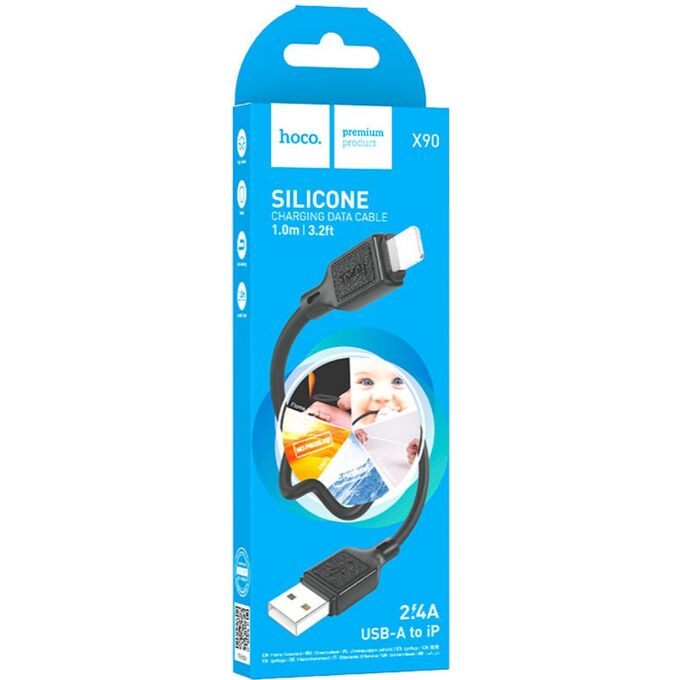 Кабель HOCO X90/ USB Lightning/ 1m/ / Силикон/ Черный