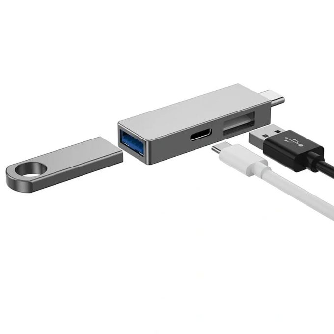 HUB WiWU T02 Pro 3 in 1 Type-C to USB 3.0 + USB 2.0 + Type-C (Gray)