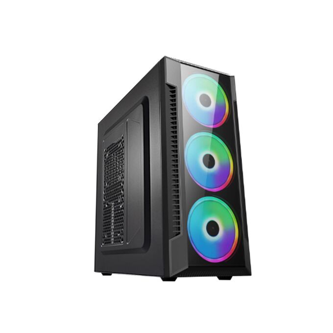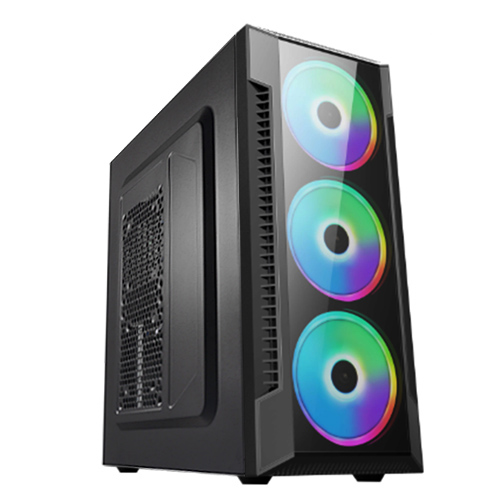 Прозрачная передняя панель (акрил), 3x передних вентилятора 120 мм с подсветкой 15 LED RGB.
