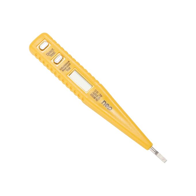 Индикаторная отвертка-тестер напряжения представляет собой цифровой тестер для определения наличия электрического тока в электрических сетях контактным способом, а также проверки целостности электрических цепей, электрических лампочек, предохранителей, проводов и наличия электромагнитного излучения. Оснащён дисплеем и не требует элементов питания для работы.