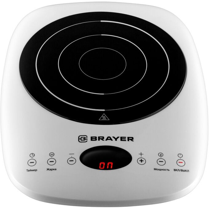 Плитка индукционная BRAYER BR2802 настольная. 1 конфорка, 2000Вт, закаленное стекло, сенсорное управ