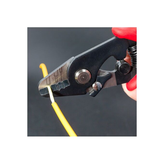 Инструмент для зачистки оптоволокна КВТ FOS-01 55958 является универсальным стриппером с тремя отверстиями для снятия оболочки с оптоволоконного кабеля. Зачистка изоляции в диаметре до 900-250-125 мкм без риска порезов кабеля. Приспособление создано специально для работы с оптическим кабелем и не предназначено для снятия изоляции с электрических проводов. Для устранения сбоя заводской установки предусмотрен регулировочный винт.