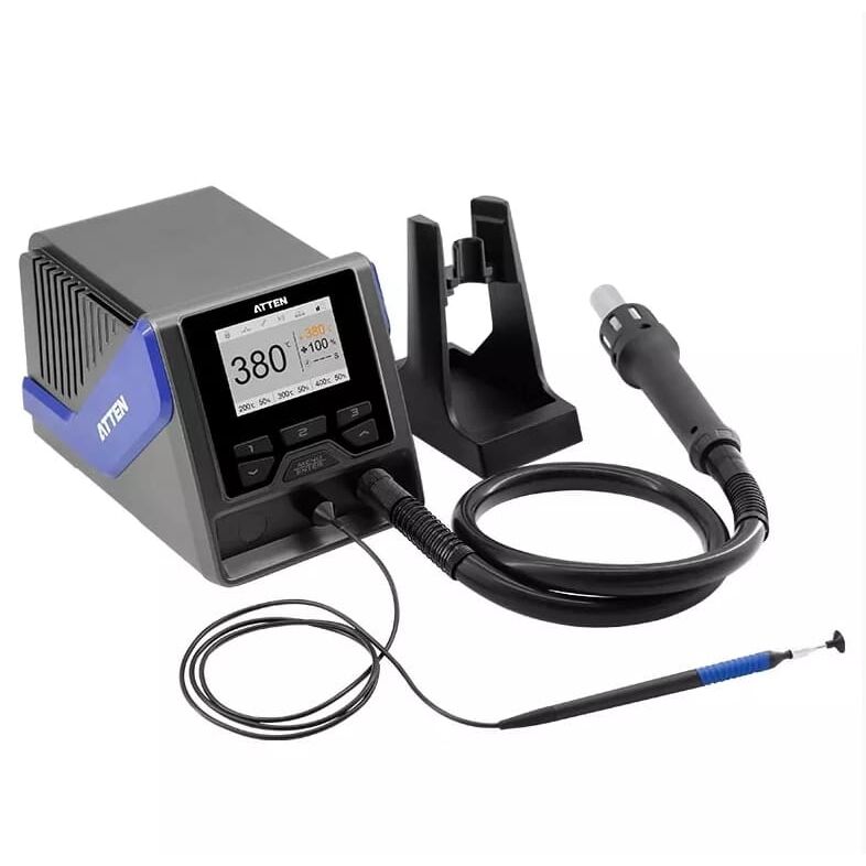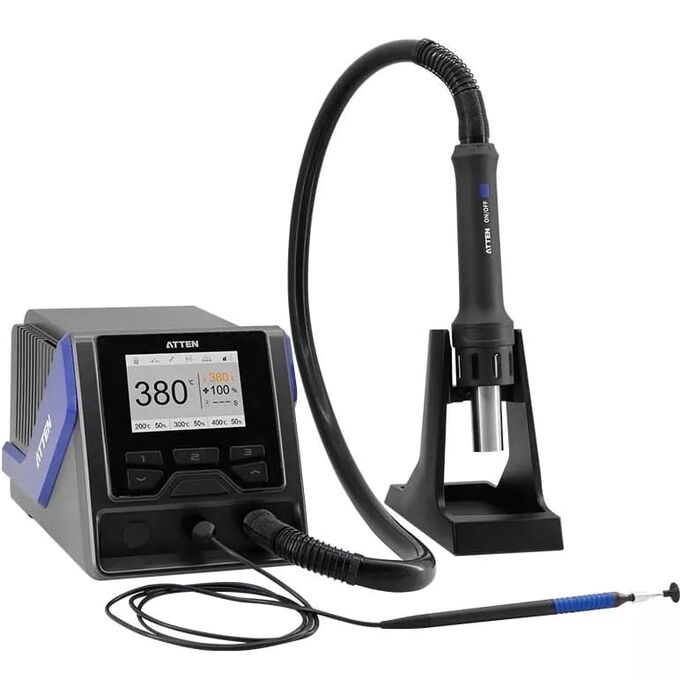ATTEN GT-1028 интеллектуальная, высокомощная, термовоздушная ремонтно-паяльная станция для пайки горячим воздухом, подойдет для прогрева даже больших деталей, благодаря максимальной мощности в 1 300 Вт и точной обратной связи по температуре на выходе воздушного потока от нагревателя.