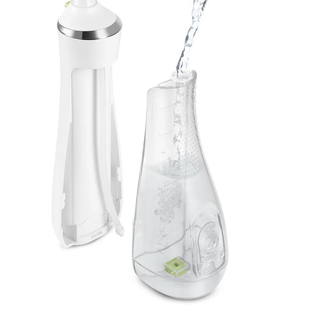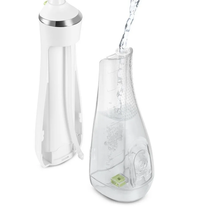 У ирригатора есть съёмный резервуар для воды ёмкостью 220 мл, которого хватает для тщательной обработки полости рта. Прибор автоматически отключается после 2 минут использования.