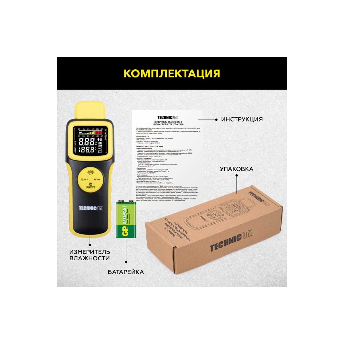 Измеритель влажности древесины TECHNICOM TC-MT600 бесконтактный
