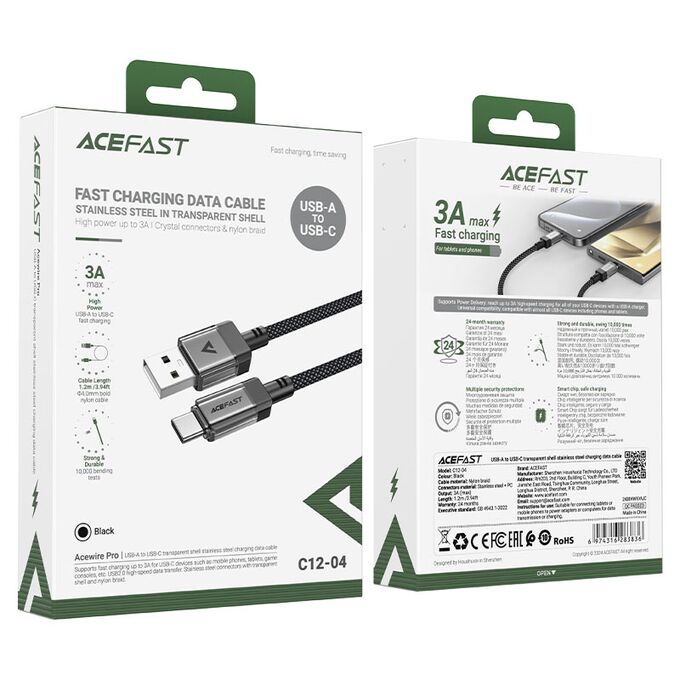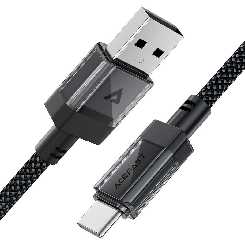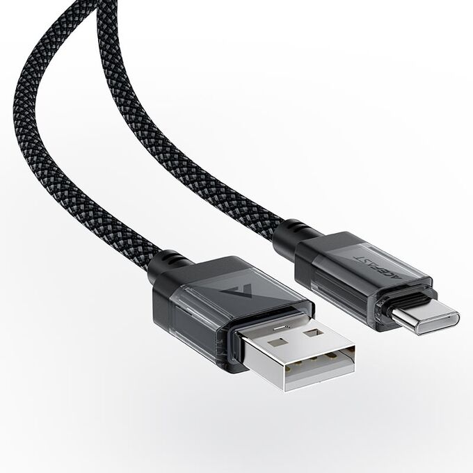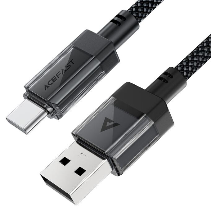 Дата-кабель ACEFAST C12-04 USB-A To USB-C Transparent Shell Stainless Steel Charging Data Cable. черный