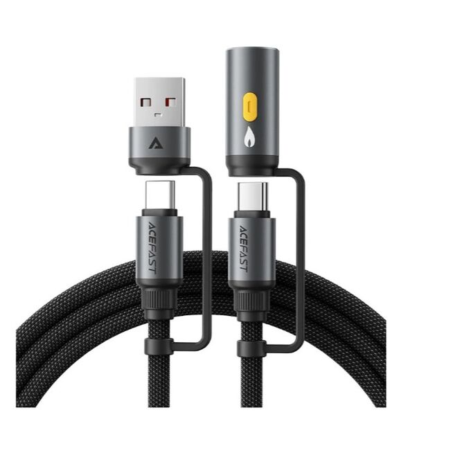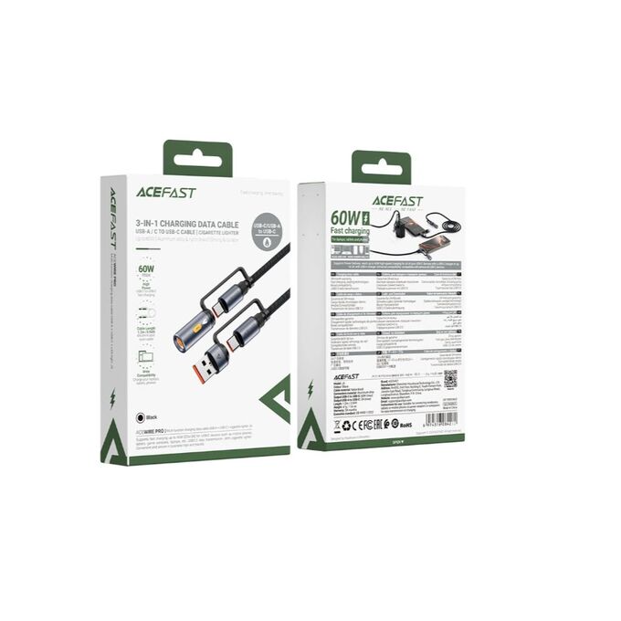 Дата-кабель ACEFAST J6 Multi-Function Charging Data Cable USB-A+ USB-C+ Cigarette Lighter с коннектором в прикуриватель. черный