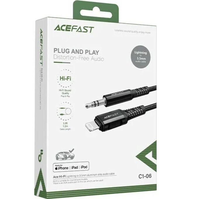 Дата-кабель Acefast C1-06 Lightning to 3.5mm aluminum (черный)