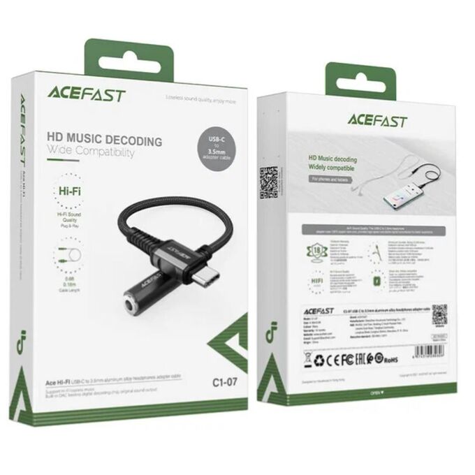 Дата-кабель Acefast C1-07 USB-C to 3.5mm aluminum (черный)