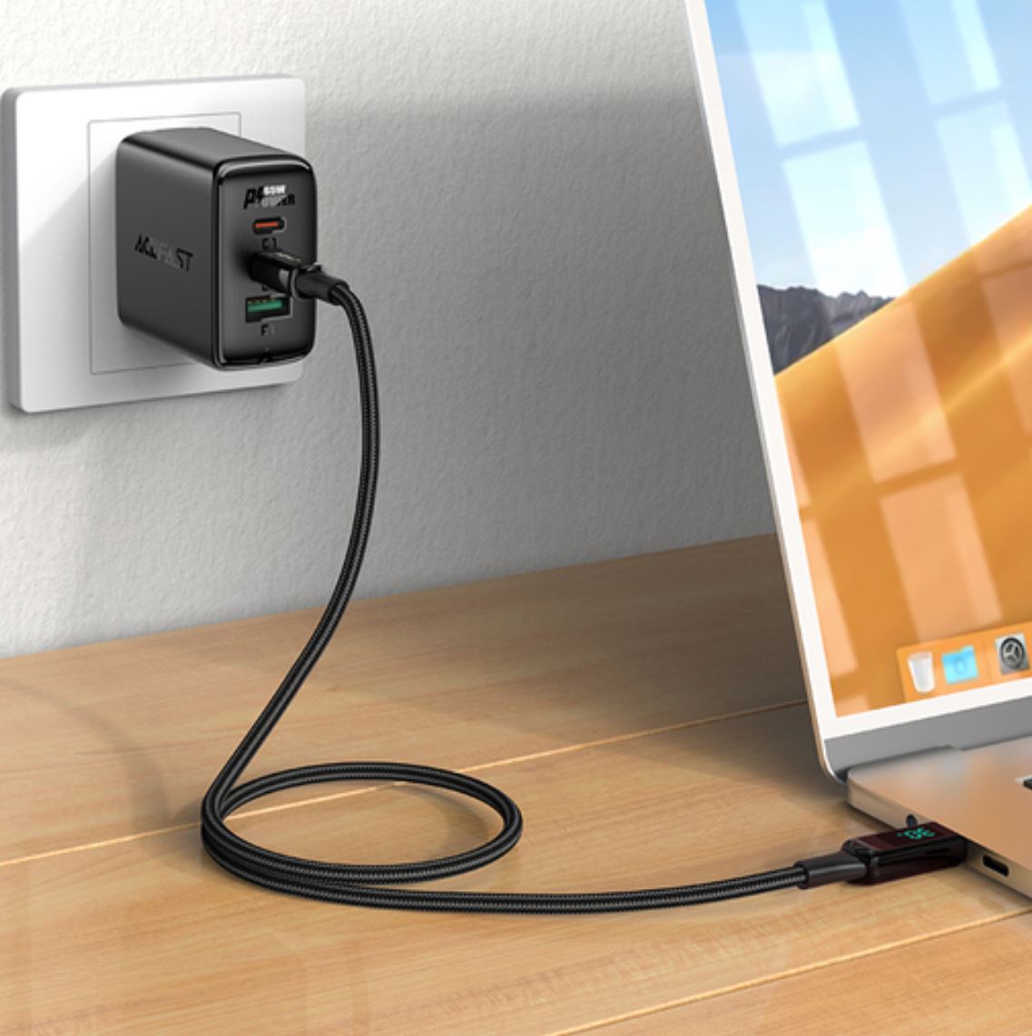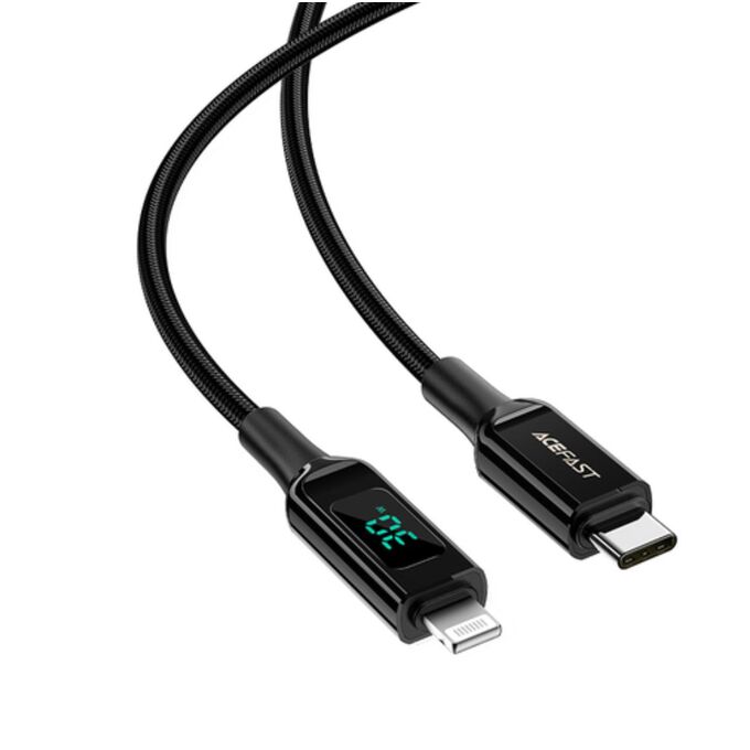 Кабель ACEFAST C6-01 USB-C to Lightning charging data cable с цифровым дисплеем. Цвет: черныйДлина: 1,2 м; вес: 45г.