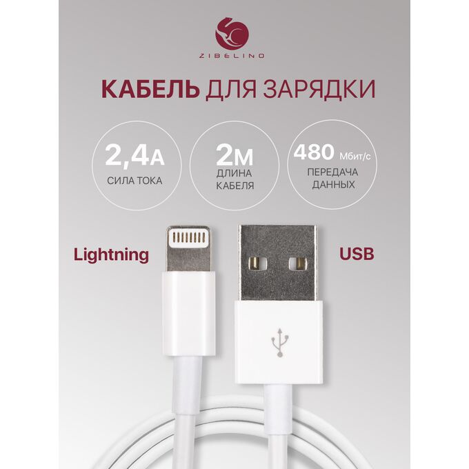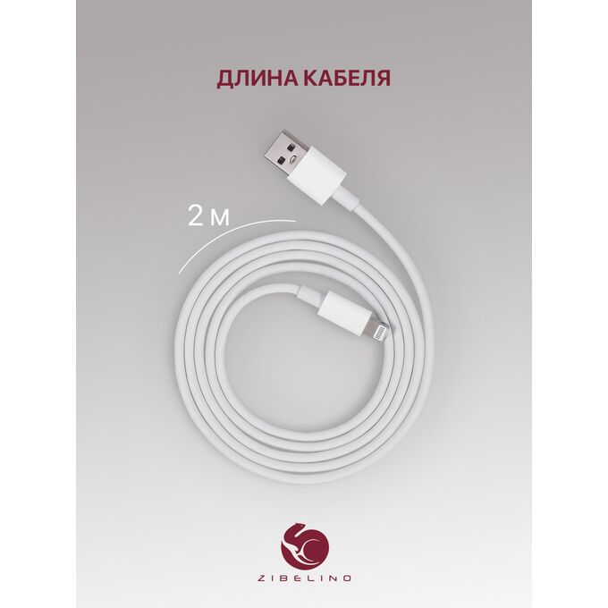 Кабель (AP) USB - Lightning (сила тока 2,4А, длина 2м) для зарядки iPhone, iPad, AirPods, iPod touch для телефона, планшета, наушников, смартфона, белый (ЮЗБ-Лайтинг)