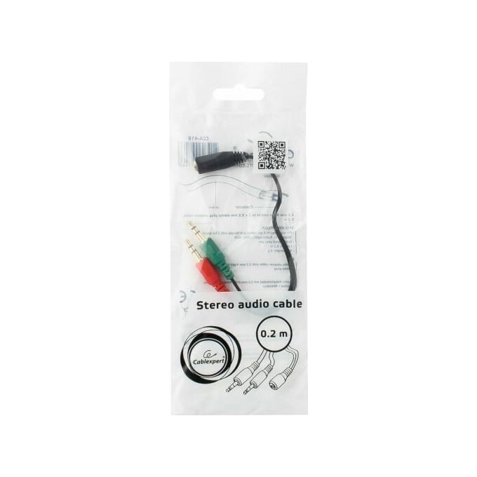 Кабель аудио Cablexpert CCA-418 джек3.5 наушники+3.5 микрофон- джек3.5 4pin 20см черный