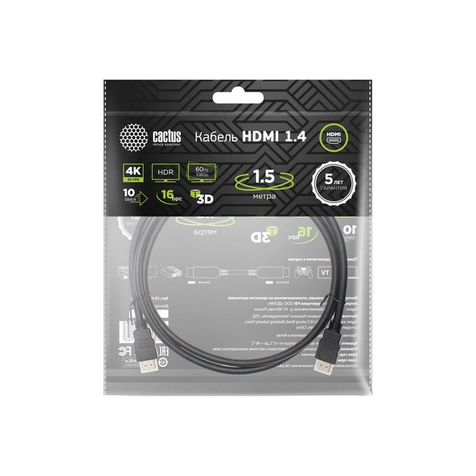Кабель аудио-видео Cactus CS-HDMI.1.4-1.5 HDMI (m)/HDMI (m) 1.5м черный