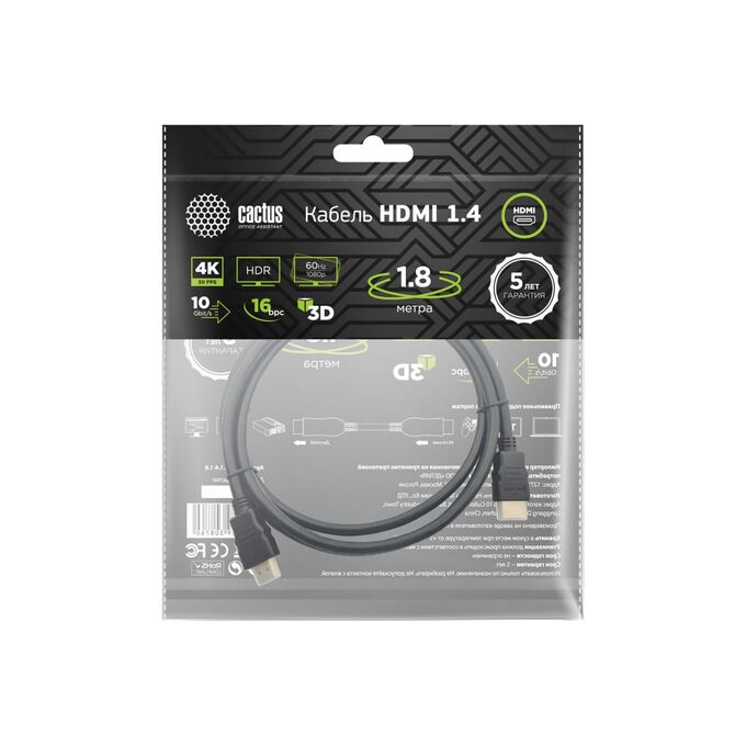Кабель аудио-видео Cactus CS-HDMI.1.4-1.8 HDMI (m)/HDMI (m) 1.8м черный
