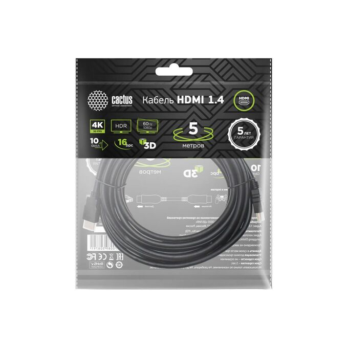 Кабель аудио-видео Cactus CS-HDMI.1.4-5 HDMI (m)/HDMI (m) 5м черный