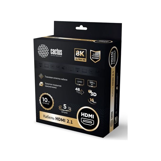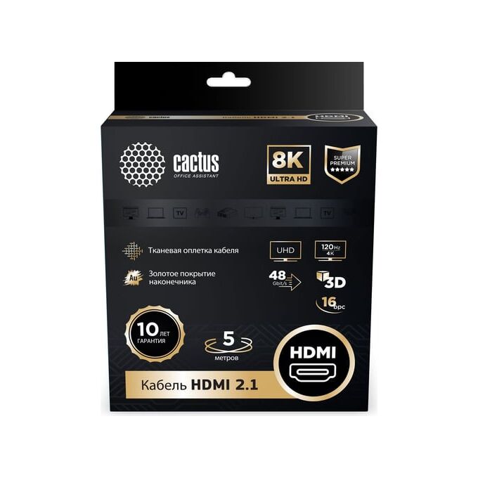 Кабель аудио-видео Cactus CS-HDMI.2.1-5 HDMI (m)/HDMI (m) 5м серебристый