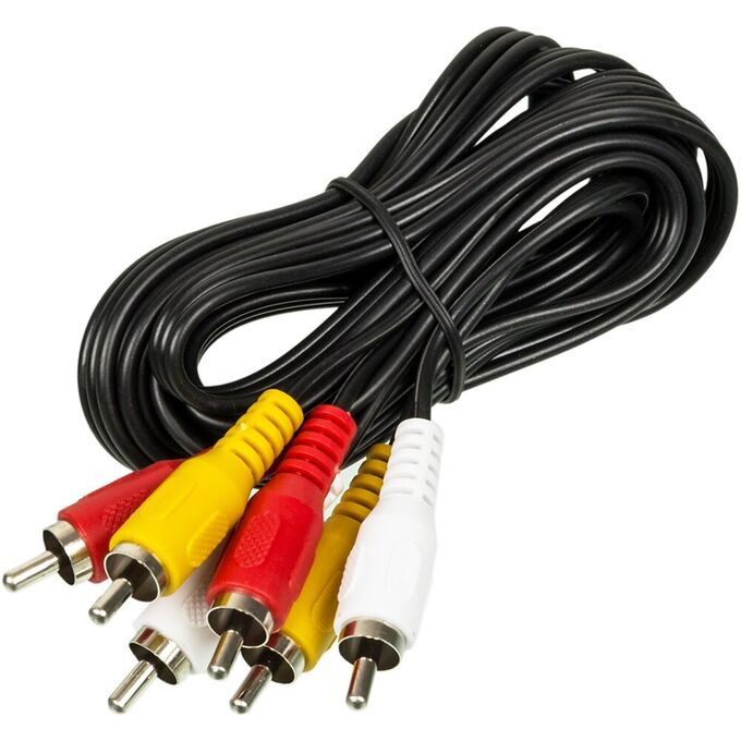 Описание: Тройной кабель RCA для передачи аудио и видеосигнала от DVD плеера или видеомагнитофона к телевизору или проектору.