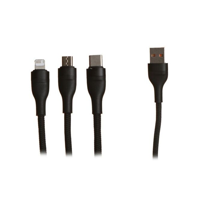Многофункциональный зарядный кабель USB Type-A и 3-мя вилками, должен быть в каждом доме! Он идеально подходит для зарядки популярных электронных устройств — телефонов, ламп, небольших вентиляторов и других с разъемами microUSB, USB Type-C и Lightning. Получите надежный кабель изготовленный из высококачественных материалов. Он рассчитан на работу с нагрузкой до 100 Вт. Благодаря применяемым защитам не перегревается и не теряет своих свойств.