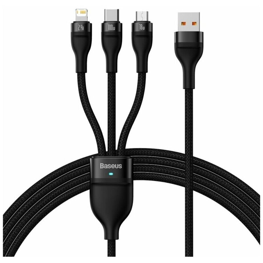 Кабель Baseus CASS030001 Flash Series Ⅱ One-for-three Fast Charging Data Cable USB to M+L+C 100W 1.2m Black