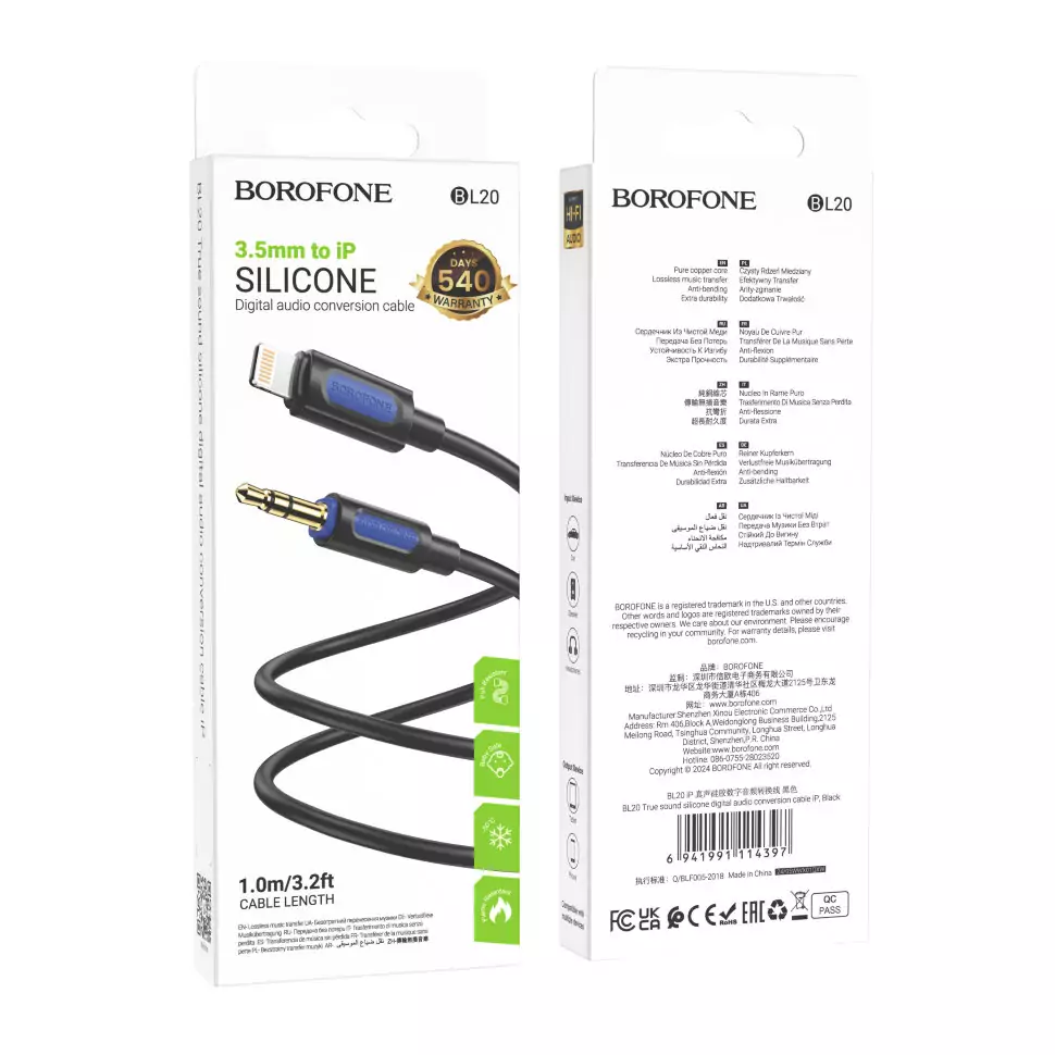 Кабель BOROFONE BL20 True sound silicone digital audio conversion cable IP Black