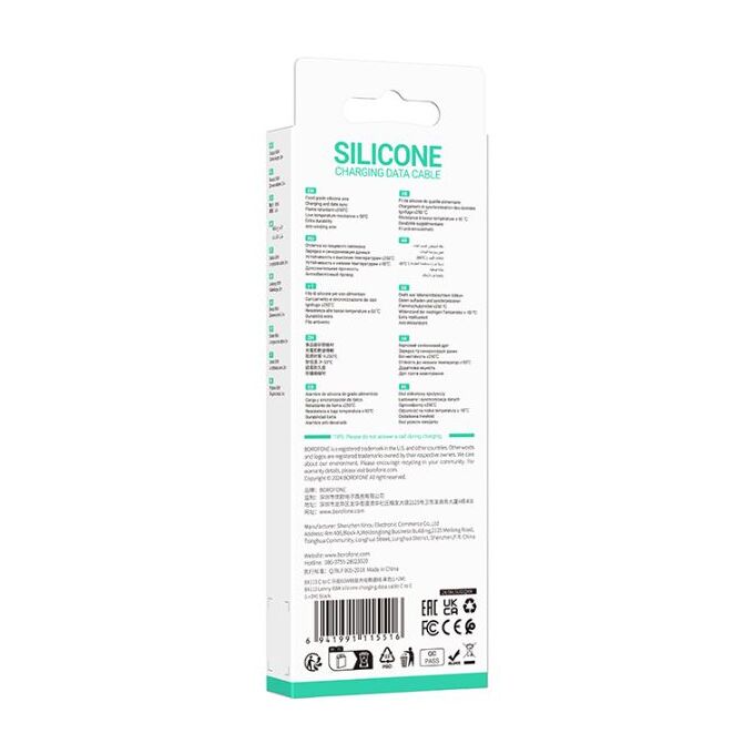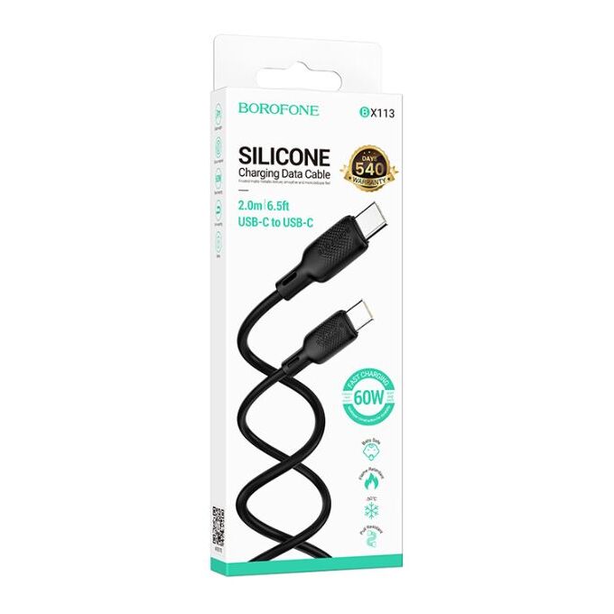 Кабель BOROFONE BX113/ PD Type-C-Type-C/ 2m/ 60W/ Силикон/ Черный
