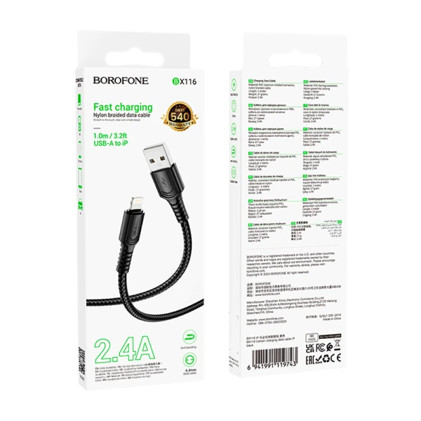Кабель BOROFONE BX116 USB Lightning чёрный