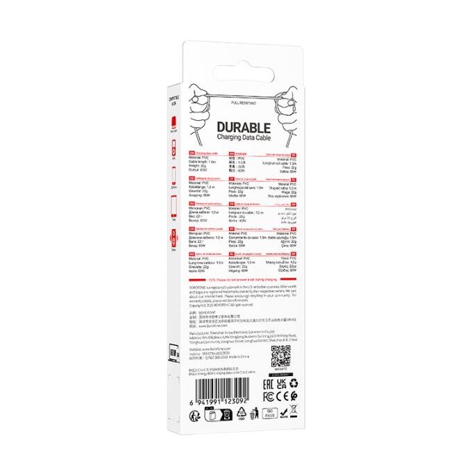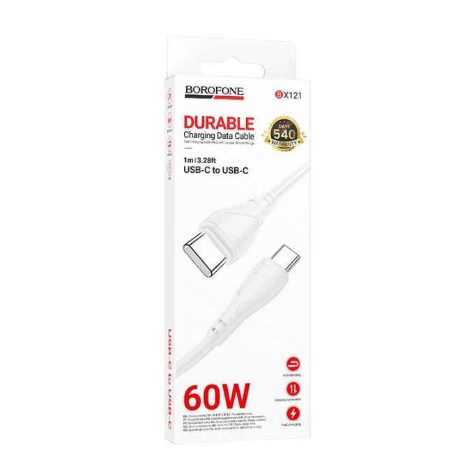 Кабель BOROFONE BX121/ PD Type-C-Type-C/ 1m/ 60W/ Белый