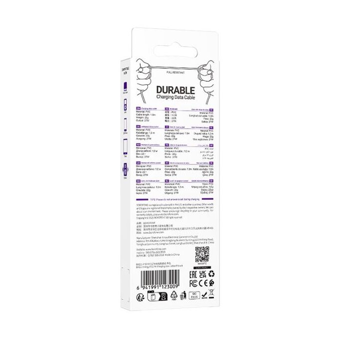 Кабель BOROFONE BX121/ PD Type-C-Type-C/ 1m/ 60W/ Черный