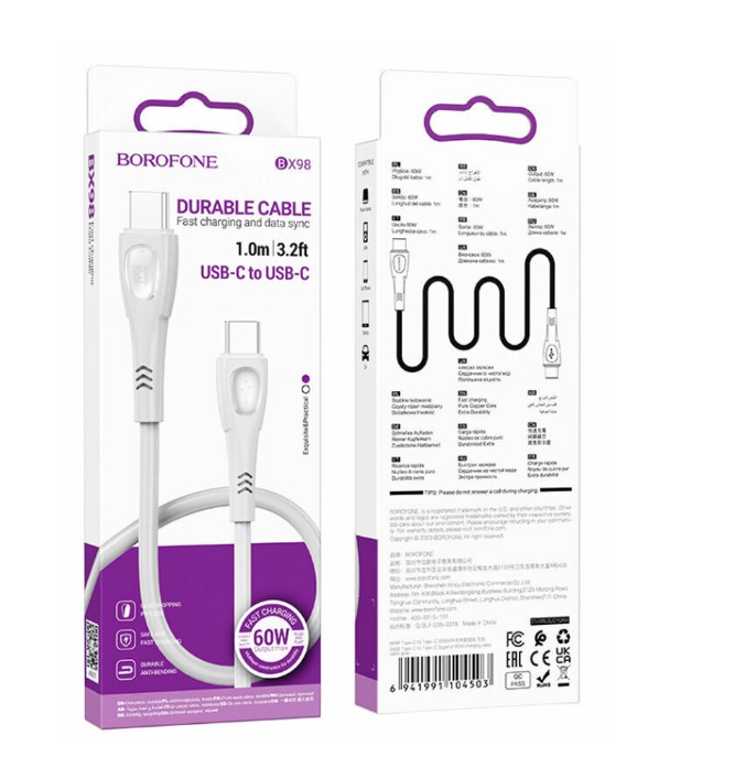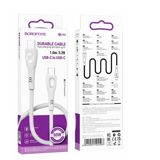 Кабель Borofone BX98 Superior Type-C-Type-C 1.0м, PD60Вт серый