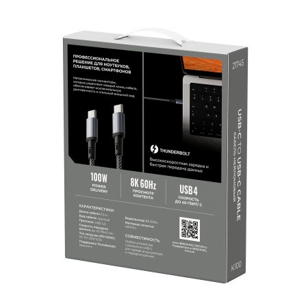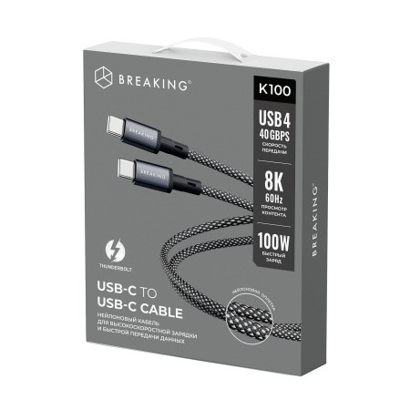 Кабель BREAKING K100 USB-C – USB-C идеально подходит для зарядки и высокоскоростной передачи данных. Использовать его можно с устройствами с разъемом USB-C, скорость передачи данных до 40 Гбит/сек. Кабель пропускает ток в 5A, что предполагает возможность быстрой зарядки. За счет того, что провод облачен в нейлоновую оболочку, он отличается повышенной прочностью и стойкостью к механическим воздействиям.