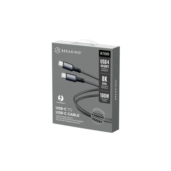 Кабель Breaking K100, USB-C - USB-C, 100W, 5.0A, 1,5м (Черный)