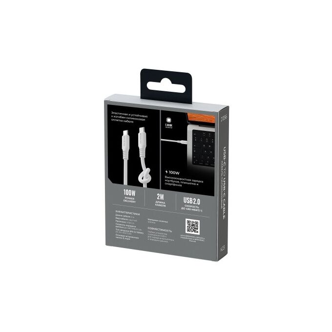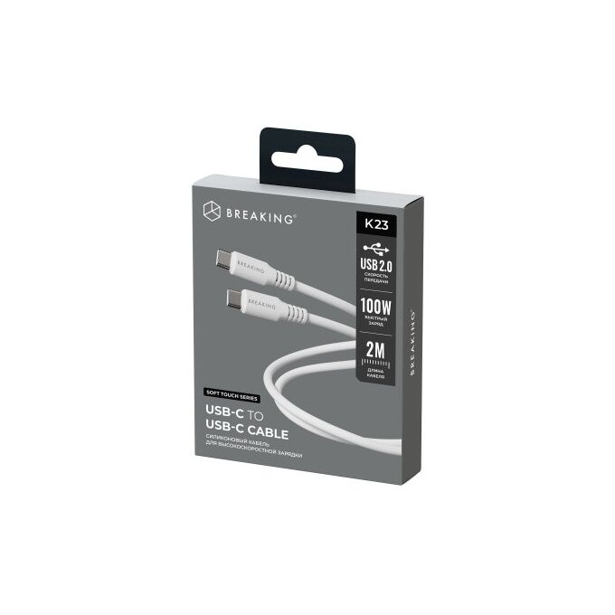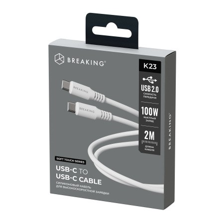 Кабель Breaking Soft Touch K23, USB-C - USB-C, 100W, 5.0A, 2м (Белый)