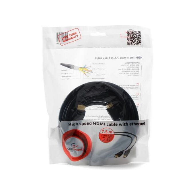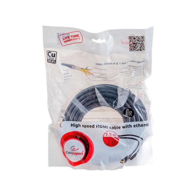 Технические характеристики Cablexpert HDMI v2.0, 19M/19M, 7.5м, черный, позолоченные разъемы, экран CC-HDMI4-7.5M