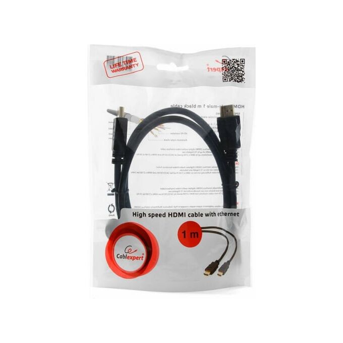 Технические характеристики Cablexpert HDMI 1м, v2,0, 19M/19M, черный, позолоченные разъемы, экран, пакет CC-HDMI4-1M
