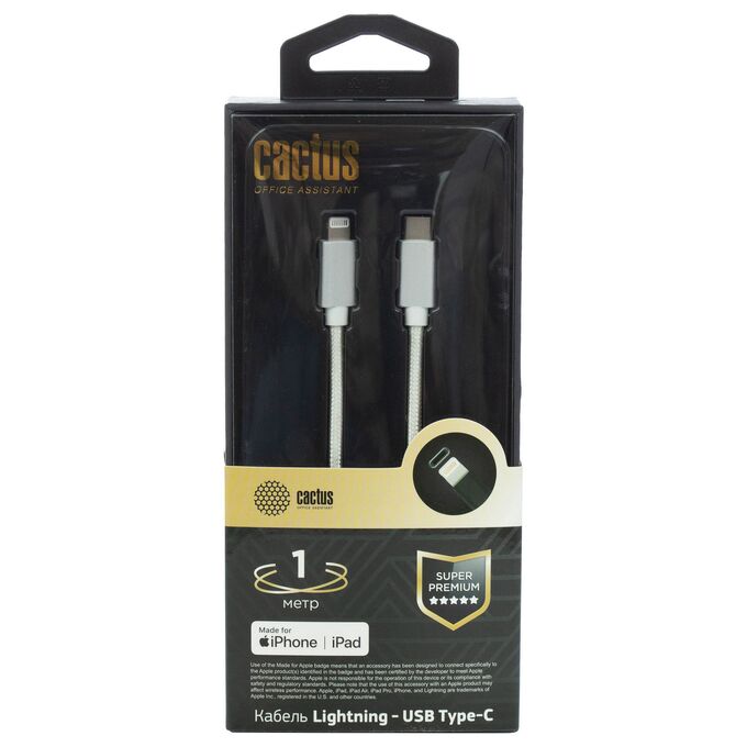 Кабель Cactus CS-LG.USB.C-1 USB Type-C m-Lightning m 1м белый