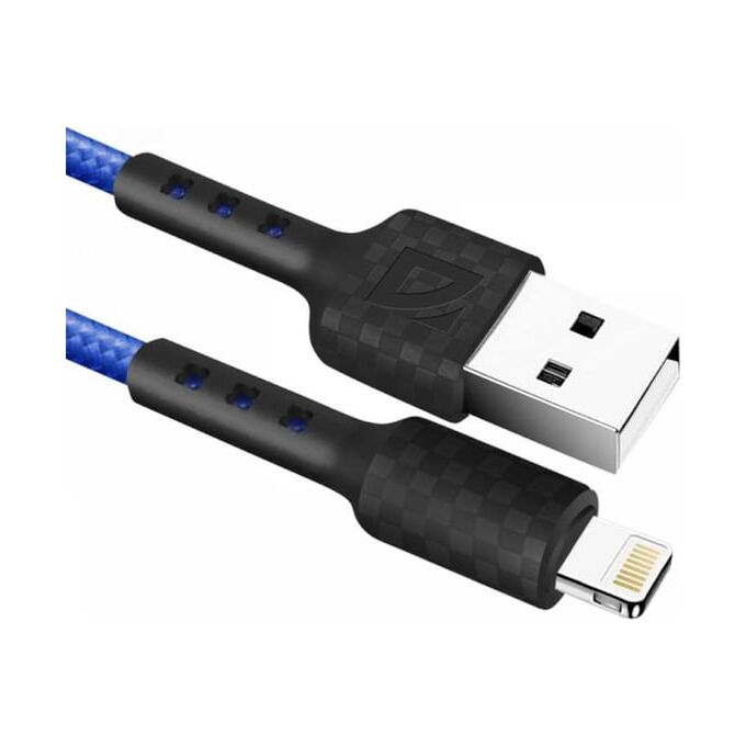 USB кабель DEFENDER F181 Lightning, blue, 1м, 2.4А, 87114BLU