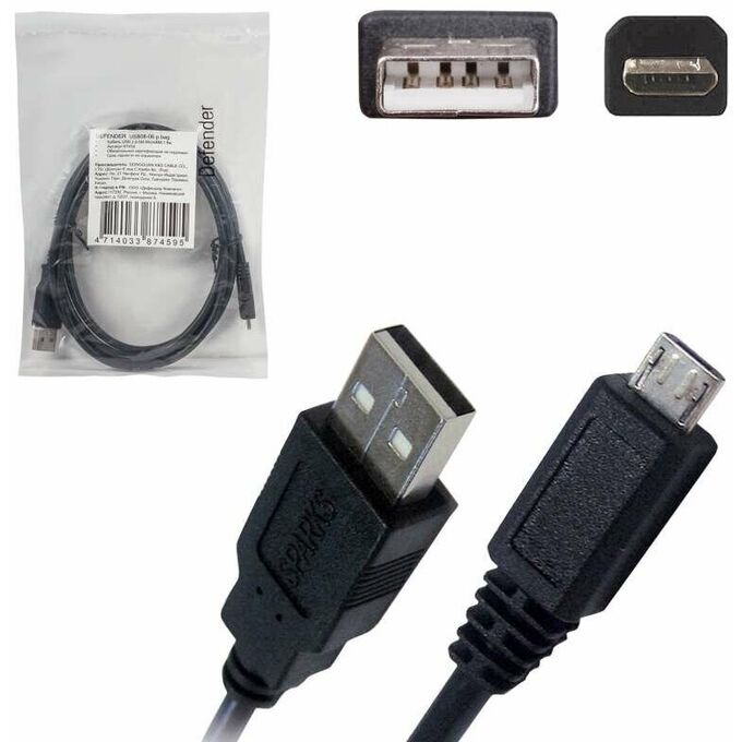 USB кабель DEFENDER USB08-06 USB2.0 AM-MicroBM, 1.8м 87459