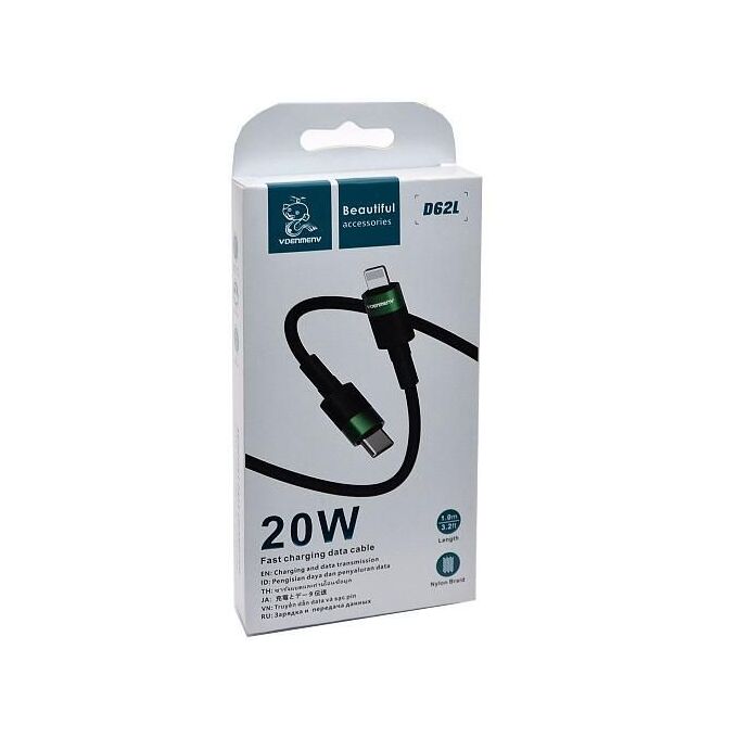 Кабель DENMEN D62 Type-C Lightning чёрный
