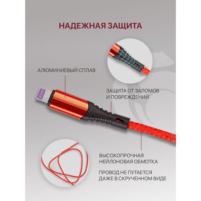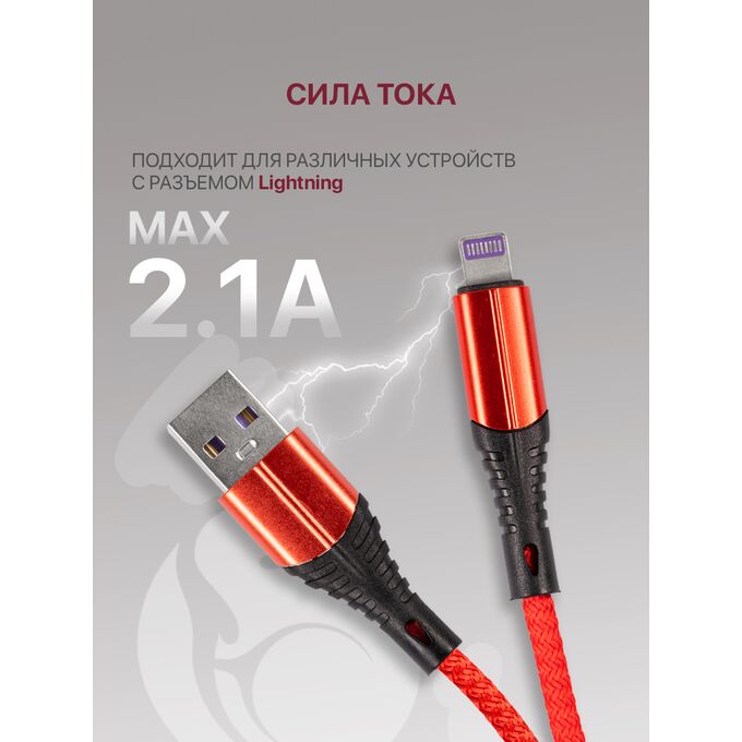 Кабель Lightning-USB для быстрой зарядки и передачи данных (2.1A) нейлоновый, красный (1м)