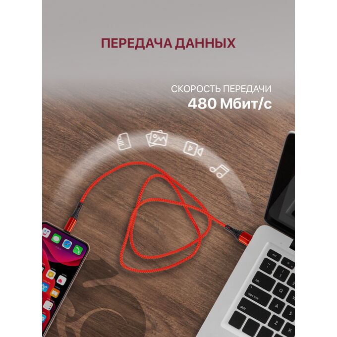 Нейлоновый кабель для зарядки айфона lightning. Максимальный ток 2.1 Ампер. Зарядный провод для lightning подходит для любого устройства Apple c разъемом Lightning. Кабель для айфона прошёл тестирование на прочность и работоспособность, имеет защиту от скачков напряжения, от перегрева и короткого замыкания. Нейлоновая оплетка придает кабелю дополнительную жесткость и защищает от возникновения заломов и механических повреждений, усиленная защита коннекторов значительно продлевает срок службы кабеля. Провод для iphone может передавать данные на ПК при подключении через USB. Длина кабеля составляет 1м.
