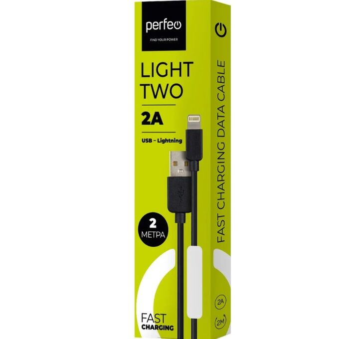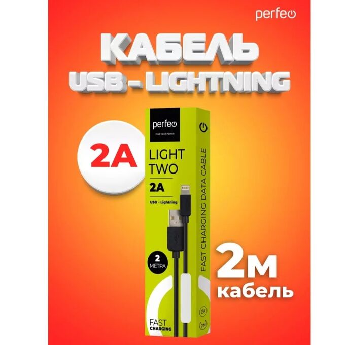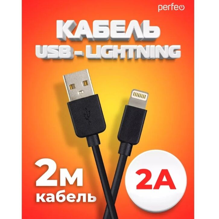 Кабель для iPhone PERFEO I4321 USB-8 PIN Lightning черный, 2м, бокс