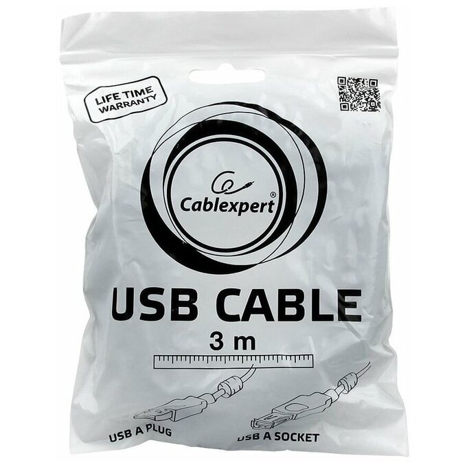 Кабель Gembird Cablexpert CCF2-USB2-AMAF-10 USB 2.0 Pro AM/AF, 3м, экран, 2феррит.кольца, черный, пакет