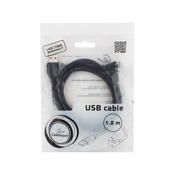 Кабель Gembird/Cablexpert Pro CCP-mUSB2-AMBM90-6 AM/microBM 5P 1,8м угловой экран черный