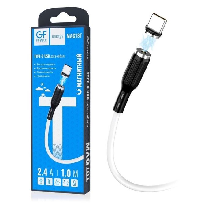 Кабель GFPower MAG18T USB (m)-Type-C (m) 1.0м 2.4A ПВХ магнит белый (1/200/800)