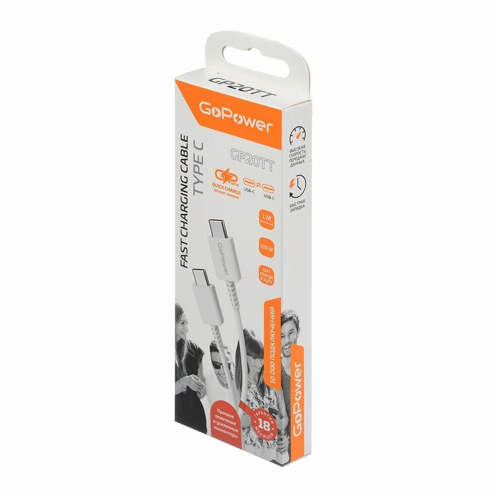 Кабель GoPower GP20TT 00-00022803 Type-C m-Type-C m белый