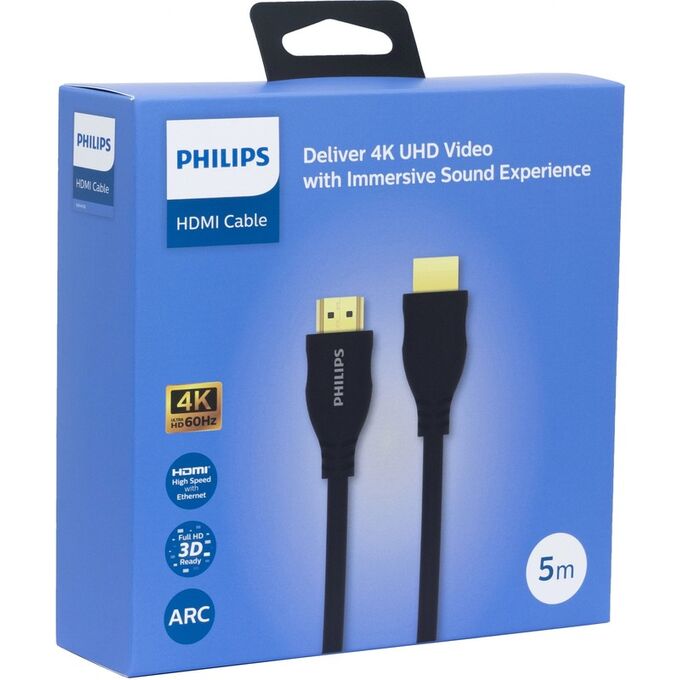 Кабель HDMI Philips SWV4150/56 2.0 PVC HDMI:4Kx2K@60Hz 28AWG OD6.5mm 5M, Black
